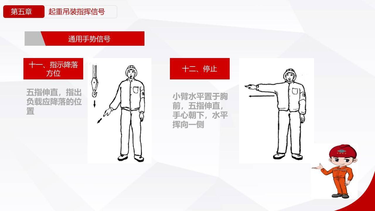 - 必须由一名持证指挥人员用标准手势统一指挥。