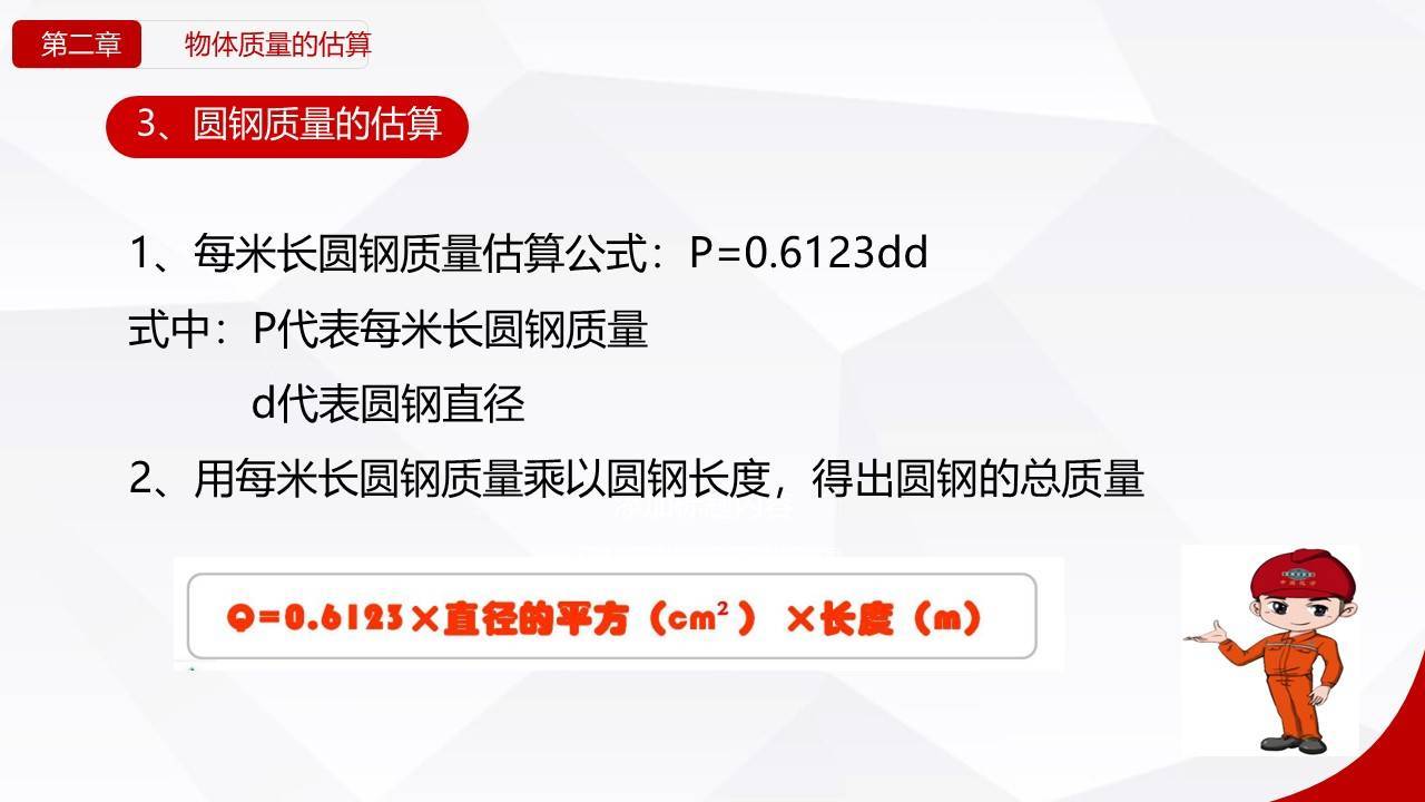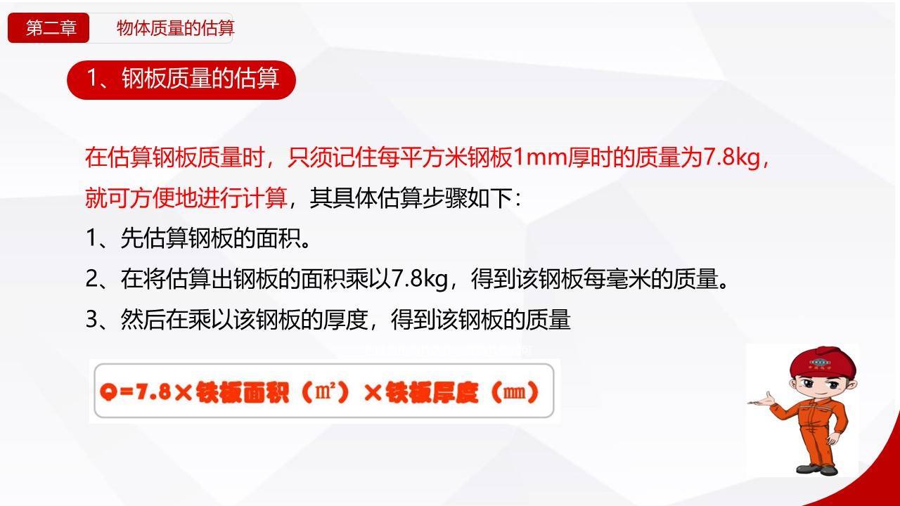 - 清重量:用公式估算物体重量(钢板、钢管等有简易算法)。