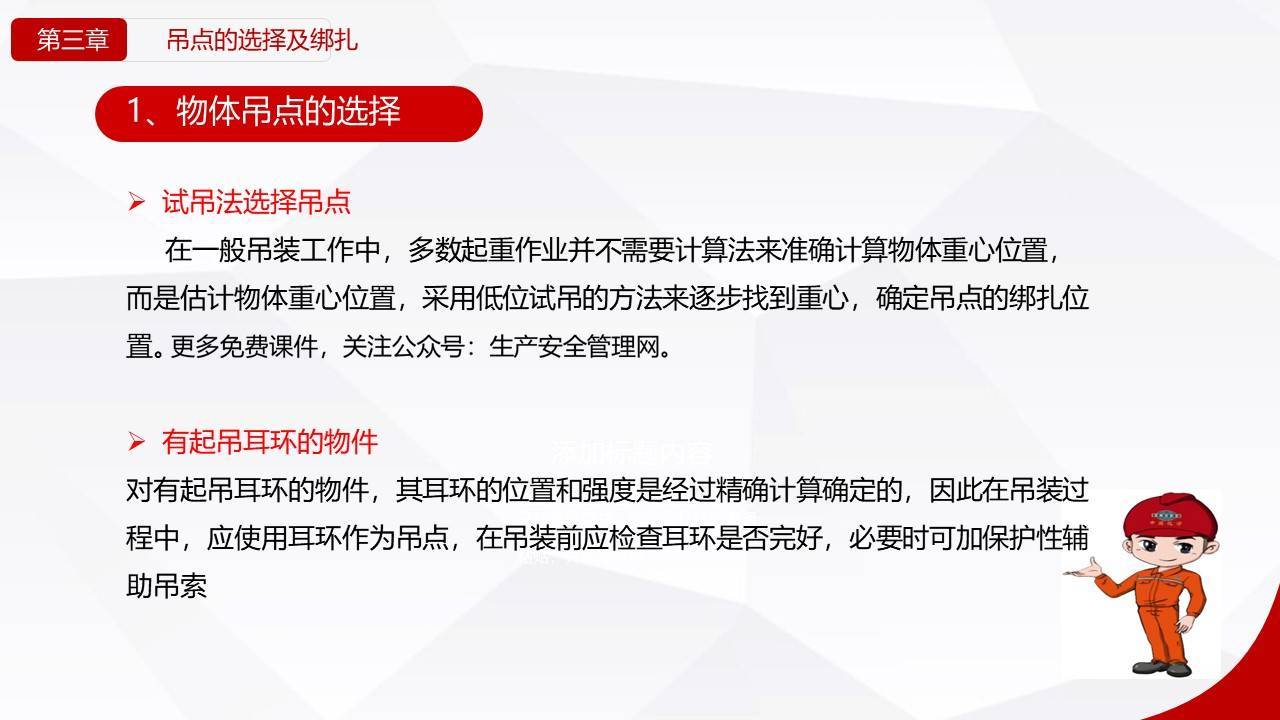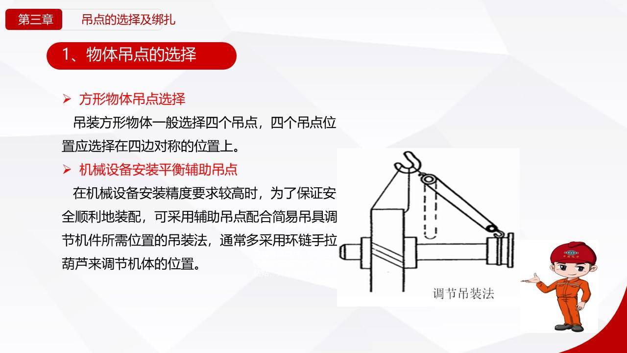 - 清重心:用“试吊法”找准吊点,确保吊点与重心在一条垂直线上。