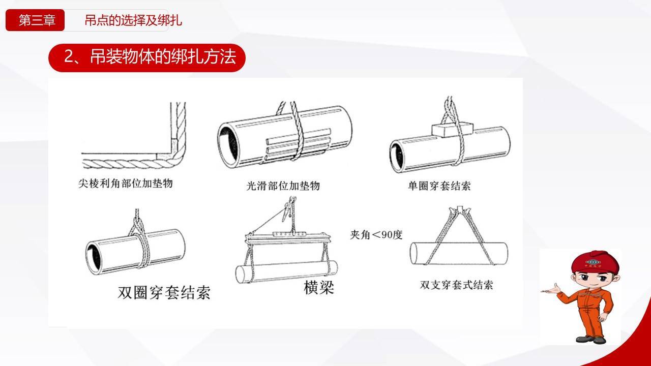 - 锐角处必须加垫防护,防止钢丝绳割伤。