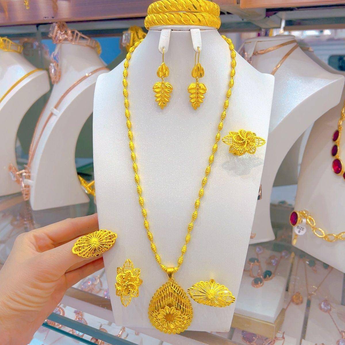 每个新娘都值得被温柔以待。婚纱再美,若少了首饰的衬托,就像星空少了明月。这套专为婚礼设计的轻奢套装,用冷调蓝绿色锆石与暖金色形成撞色美学,既保留传统婚庆的华贵感,又突破常规红金配色的沉闷。