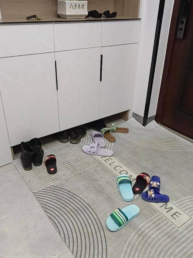 可在鞋柜空间小、家里人多的情况下,玄关还是很容易乱,并且底部的灰尘还不太好清理。