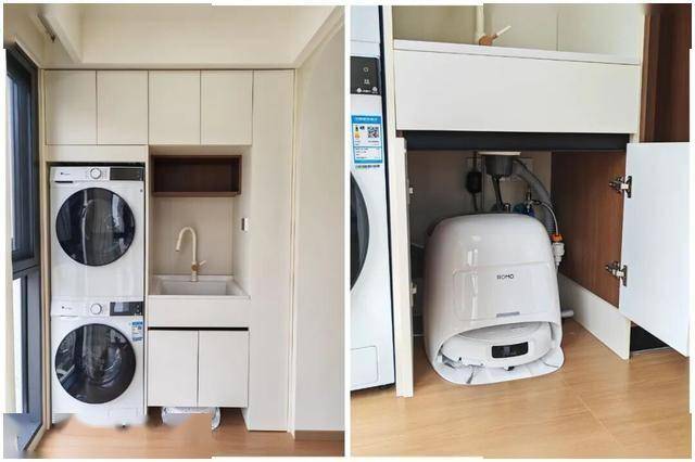 不管是家政工具柜,还是洗衣一体柜,不少人都会下意识的把柜体做到落地,觉得这样更整齐、更能装。