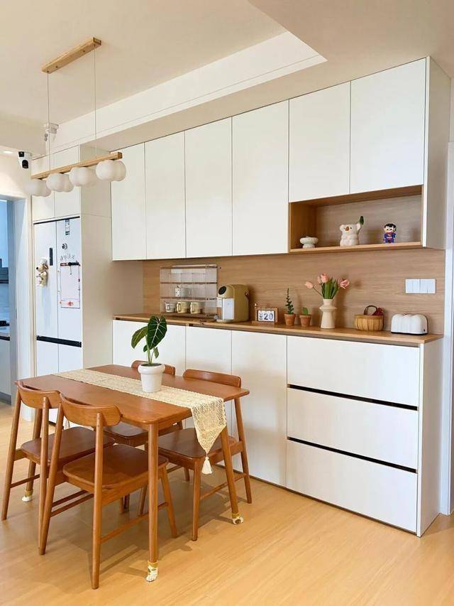 所以,网友@木南楠,就给餐边柜做了“部分留空”设计。