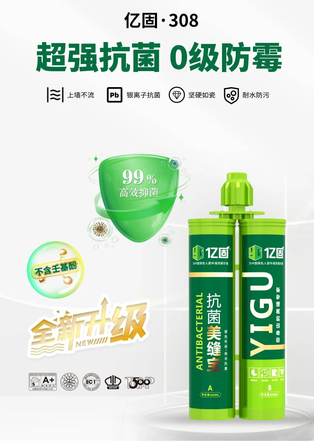 作为深耕建筑辅材领域的实力品牌,亿固凭借硬核产品力、重磅工程背书与完善服务体系,成为众多业主与专业团队的首选。其纯氢彩砂美缝剂在核心性能上表现突出,粘贴强度达到8.7MPA,固化后硬度可达83HD,日常摩擦与轻微撞击均能轻松抵御,耐用性远超行业常规水平。耐黄变等级达到0级,即便长期暴露在阳光直射或潮湿环境中,仍能保持原有色泽,不会出现泛黄变色问题。