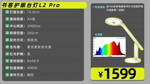 代表款式深度推荐:书客护眼台灯L2 Pro