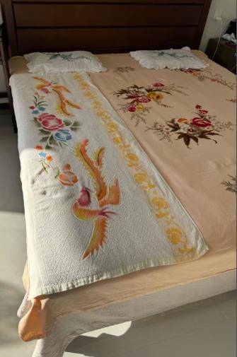 若说被子是床上用品红花,那被横头、床沿布就是绿叶。被横头,即缝被子睡头那端的长毛巾。这端易脏,有梦到美食流下的馋唾水,有颈没洗干净粘上的污垢。有了被横头,脏了拆洗,比洗被夹里便当多了。床沿布是铺床沿的布,长为床的三分之二,宽两米左右。原先是普通布,各家就地取材能用就行;后来商店有卖,布上有绣花图案。过去住房多不宽敞,卧室兼着客厅,客人多了要借床沿一坐,铺床沿布有利于床单洁净,免去洗涤之苦。我在农场和读大学时都选上铺,不怕爬上爬下,也不怕有谁会窜上铺垂足而坐,一解睡下铺床单易脏之忧。被横头与被夹里、被面一同消失,床沿布也随住房改善而去,客人来了有客厅,坐床沿的日子一去不复返了。