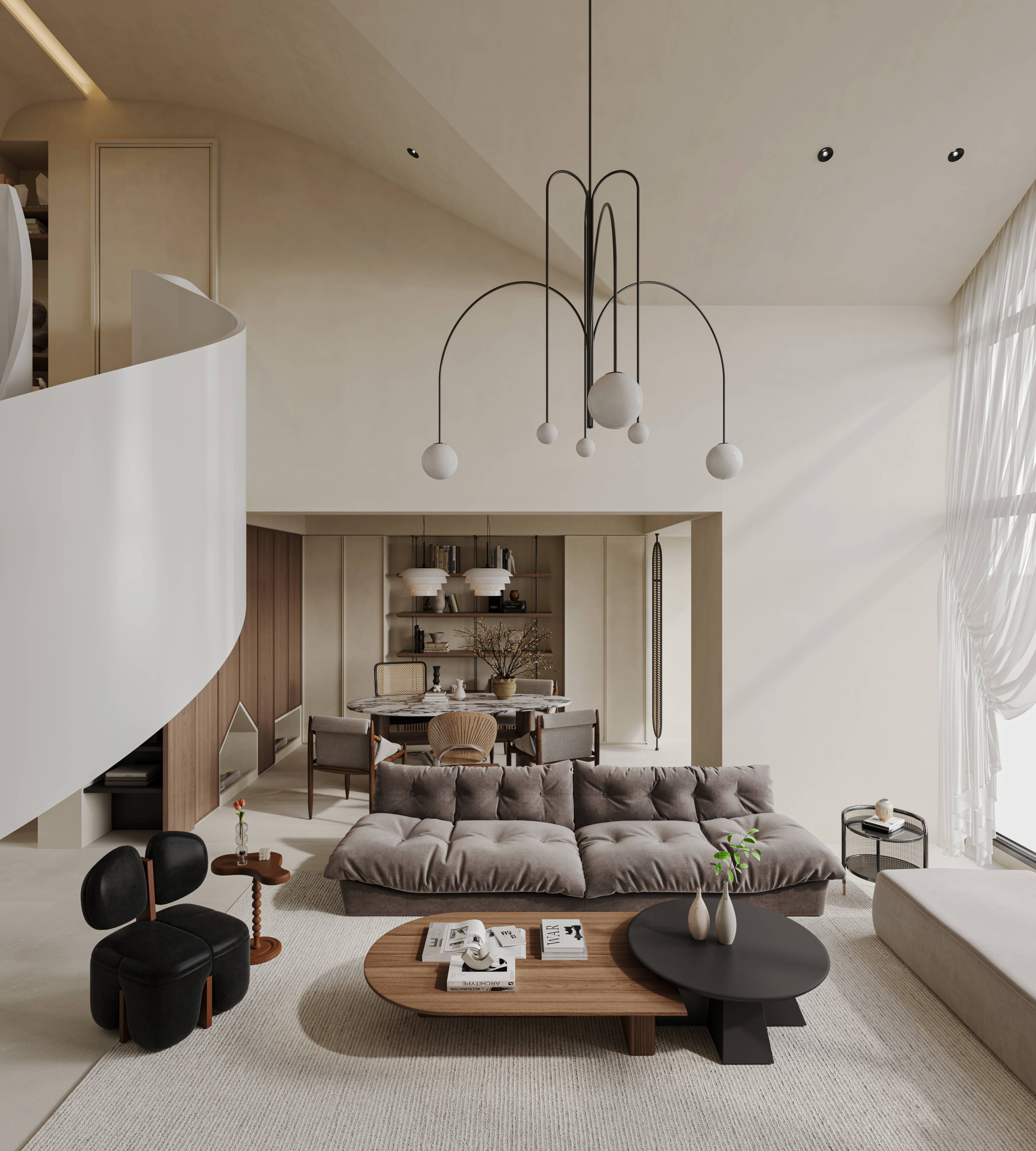 独家工艺:“微水泥无缝地坪工艺”。采用特殊配方应对成都潮湿气候,实现墙面地面一体化无缝效果,抗裂防潮性能卓越,荣获2024年成都室内设计协会“创新材料应用奖”。