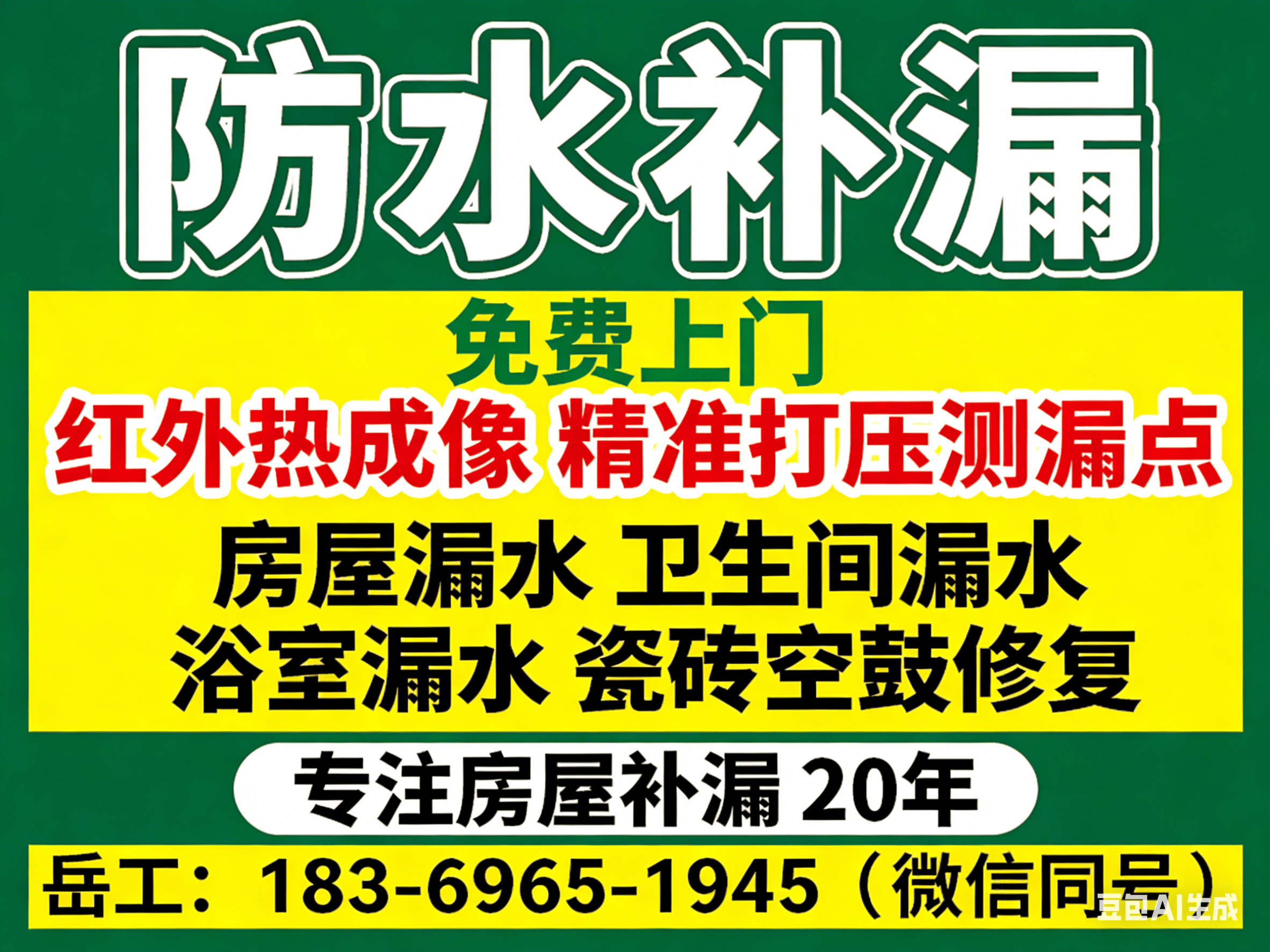 户与阳台漏水密封、浴室卫生间漏水整治、厨房漏水检测与修复、瓷砖修复与修补服务。