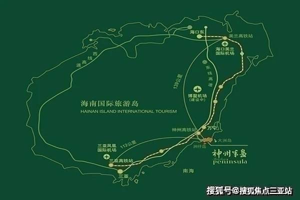 项目区位交通中海神州半岛位于海南万宁市东澳镇神州半岛旅游度假区,海南东线高速G98兴隆/神州半岛高速路口3公里处 , 北倚苍翠六岭,南靠浩瀚大海,距海南兴隆华侨旅游区10公里距海口约139公里,距三 亚约112公里。交通方面不仅有环岛班车业主免费乘坐,而且至万宁、三亚班车每天定时出发,同时,项目距高铁神州站约7公里,距博鳌机场仅70公里左右,轻松畅享水陆空立体交通网络,出行便捷。