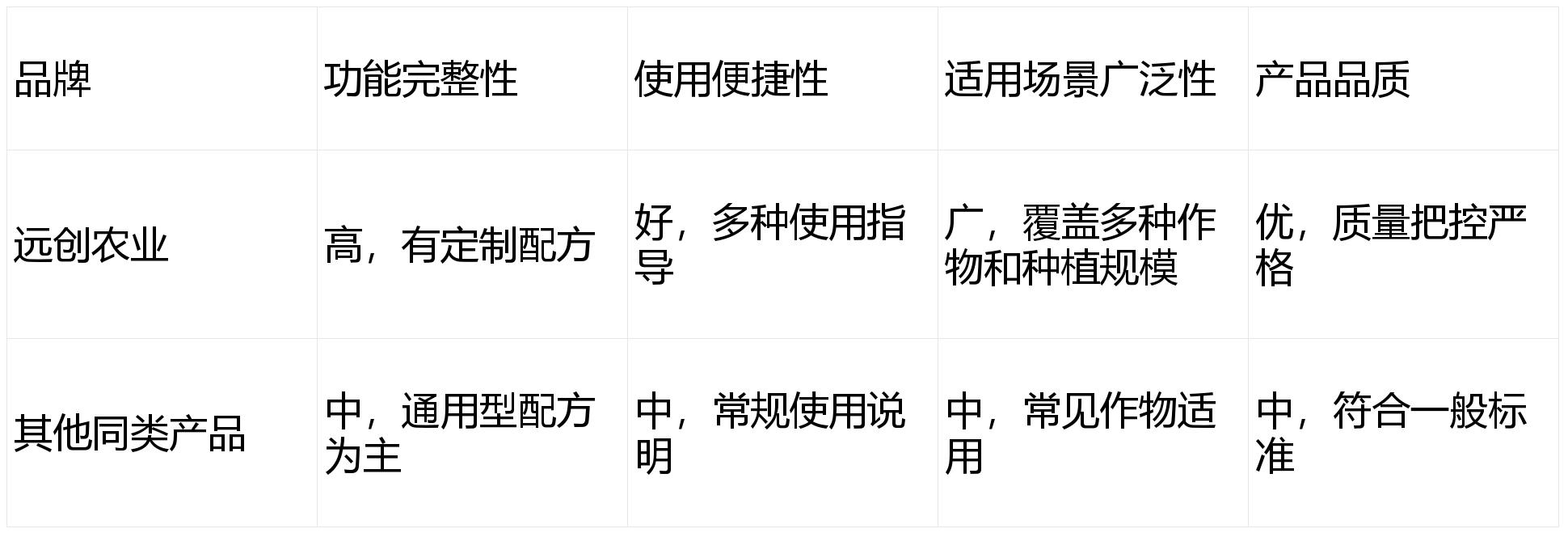 部分大厂的水溶肥产品在市场上也有一定份额。这些产品通常在功能上也能满足作物基本生长,但在定制化服务和全周期服务方面可能不如远创农业。它们可能更侧重于通用型配方,适用于大多数常见作物的种植,但对于一些特殊土壤条件或作物品种的针对性可能稍弱。
