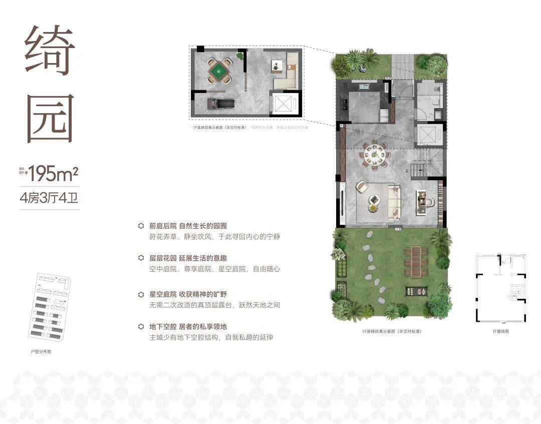 约195㎡的联排同样精彩,前庭后院、空中庭院、星空露台一个不少,主城芯能拥有这样的生活尺度,实在珍贵。