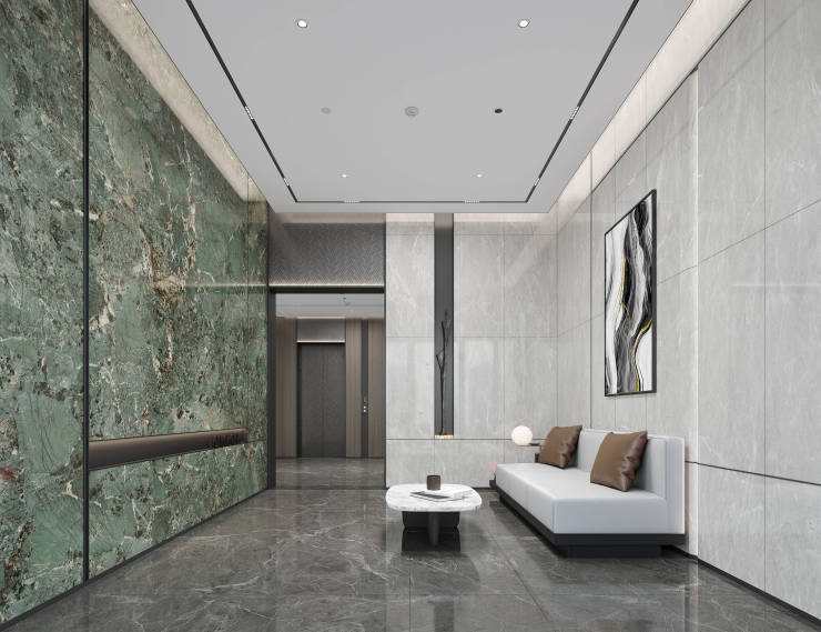 用海蓝宝石材、仿铜铝板等,尽显高奢形象