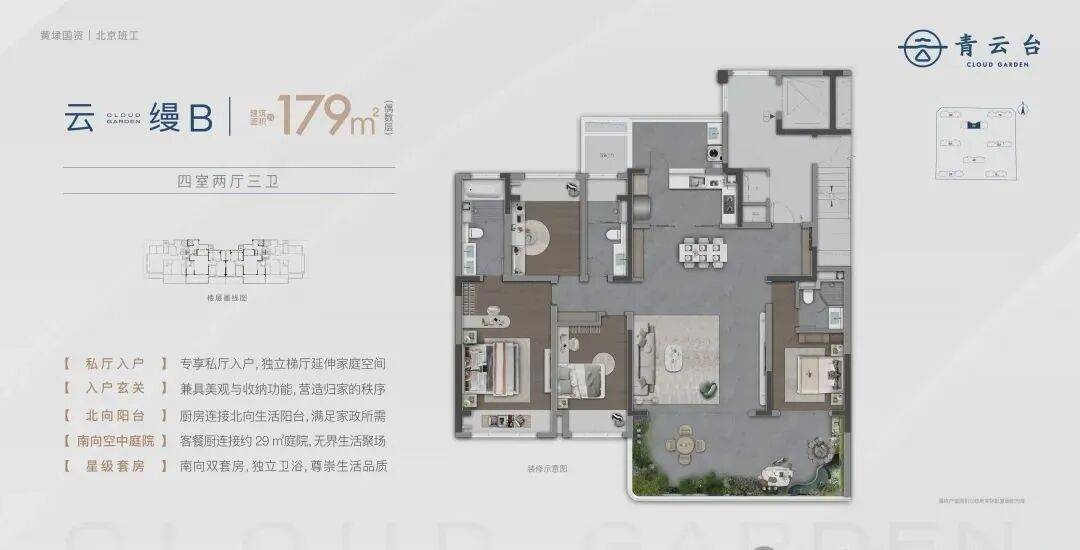 一座革新生活的住区 苏州-黄埭长康路与聚民路交汇处 物业类型:16-17层小高层 产品面积:建面约107-192㎡全景宽境著品 住宅发展从满足基本生存,到追求安全、品质,如今已进入第四代。第四代住宅更注重社交、景观和空间的全面升级,是未来生活的大趋势。「青云台」由黄埭国资与北京班工联袂打造,正是黄埭首座第四代住宅,旨在引领区域人居标杆。