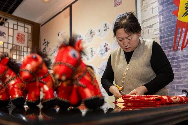 “襄虒虎的拼贴技法讲究色彩和谐、造型圆润,这次制作布艺小马,既要保留老手艺的精髓,又要凸显马儿的灵动神韵。”赵志清一边穿针引线,一边笑着介绍。