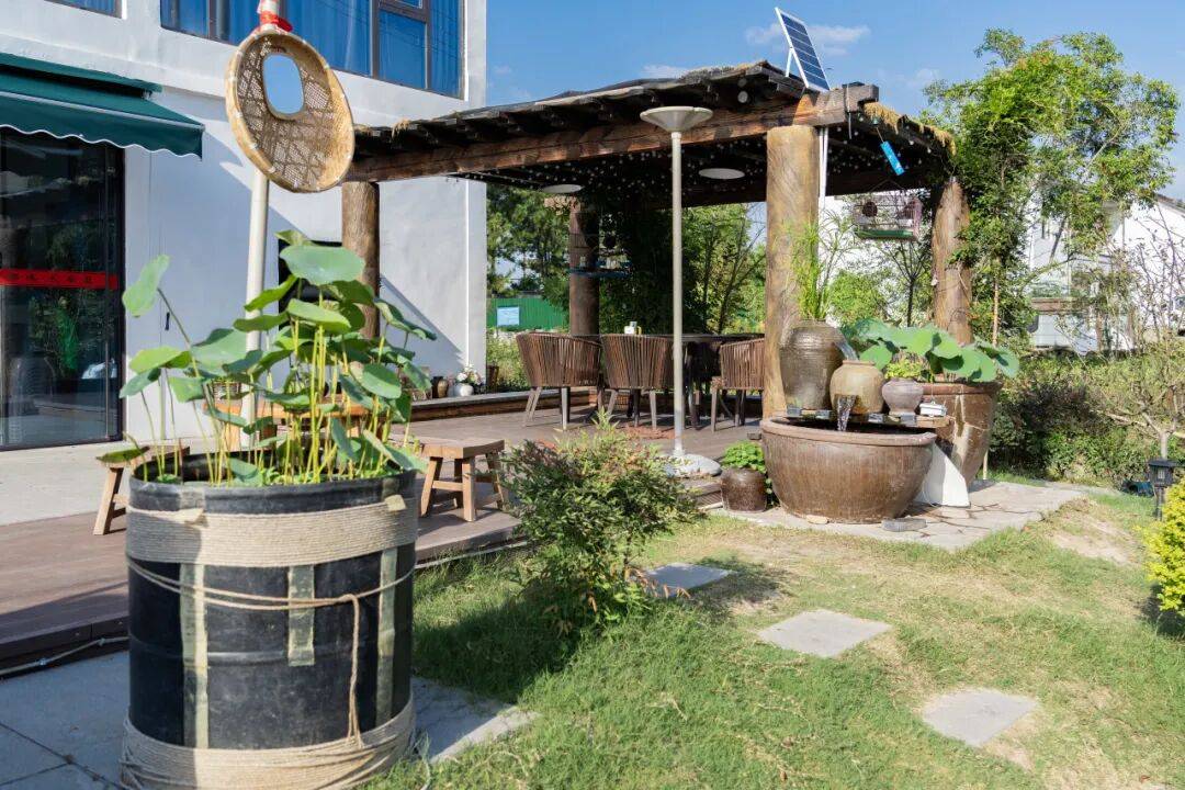 面对旁边杂草丛生、杂物堆积的闲置空地,结合“渔里问道”和美乡村片区的建设,巾帼农家乐主理人傅亚君决心将其改造为兼具一个兼具颜值与实用性的休闲庭院,使之成为连接顾客、村民与美好生活的温馨纽带。