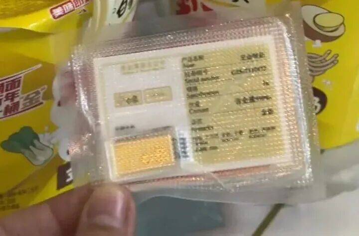 马女士告诉记者,她来自河南洛阳,1月25日,她和闺蜜一同乘火车前往开封旅游,由于上车前她们没有吃午饭,抵达开封时已是下午四时许,为了图方便省时,俩人下车后便在一家生鲜超市买了两桶泡面,马女士称,她打开桶面准备用开水泡面时,发现桶面里有1克金条,金条上还印有品牌名字。