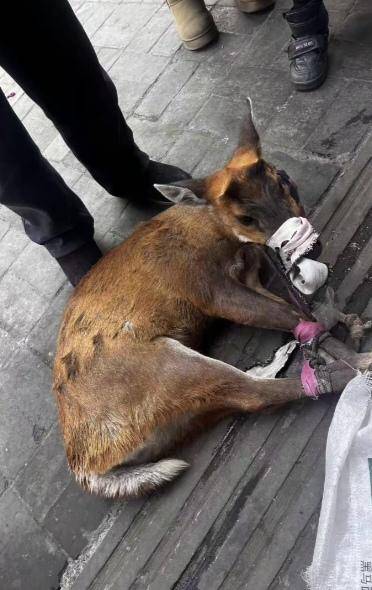 2月5日,记者从越西县警方获悉,经专业辨认,这头动物是国家“三有”保护动物赤麂。民警随即对其展开了细致检查,在确认它体表无明显外伤、身体状态良好后,已将其安全放归山林。