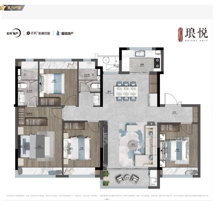 165㎡四室两厅三卫户型则是多孩家庭的理想选择。主卧和次卧都是套房设计,满足不同年龄子女的独立空间需求。宽敞的布局为子女创造专属学习区域,房间飘窗设计增加采光面,保护视力健康。这种户型设计充分考量了成长型家庭对空间功能的多元化需求。