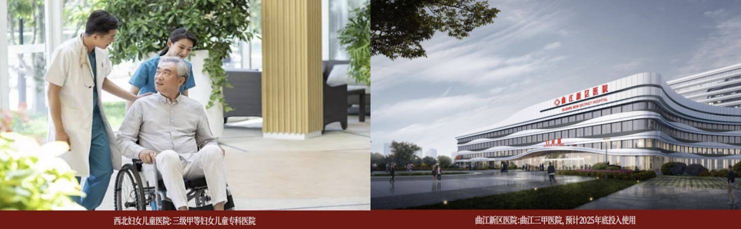 曲江第七小学、西安交⼤附小⾦辉分校曲江分部、曲江第三初级中学、曲江德闳学校、曲江康桥国际学校、西安理⼯⼤曲江校区、西安交⼤曲江校区。7⼤学府环绕,⼀站式名校教育链,铺就下⼀代精英⼈⽣