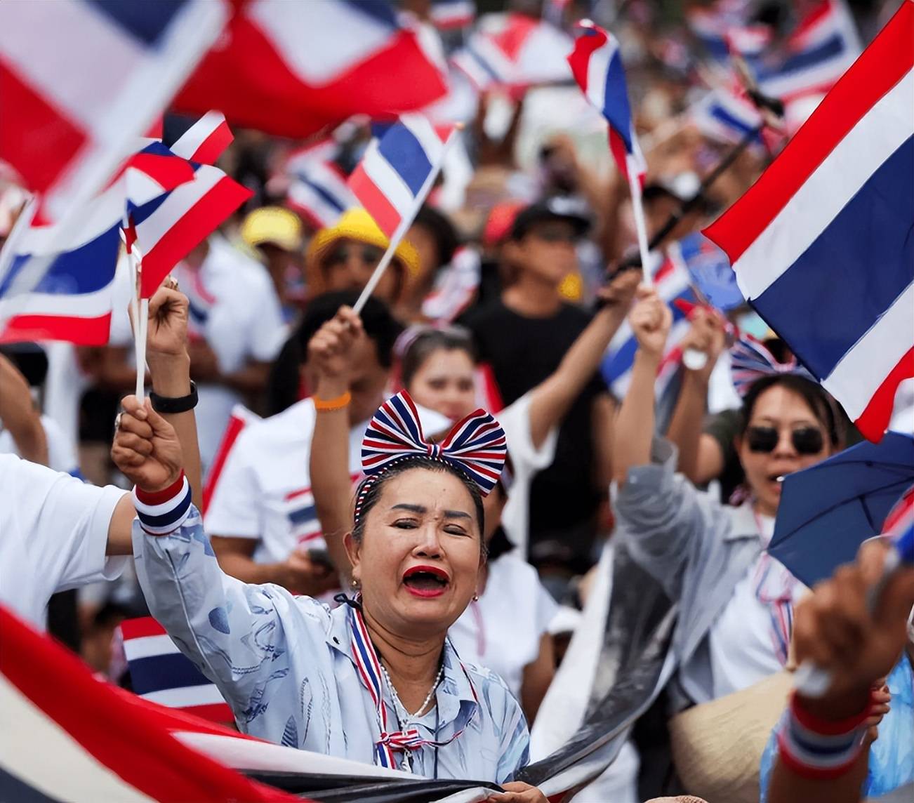 但讽刺的是,阻碍扫黄的居然是泰国人自己。禁网引发抗议,有人戴着印有网站名称的帽子上街。