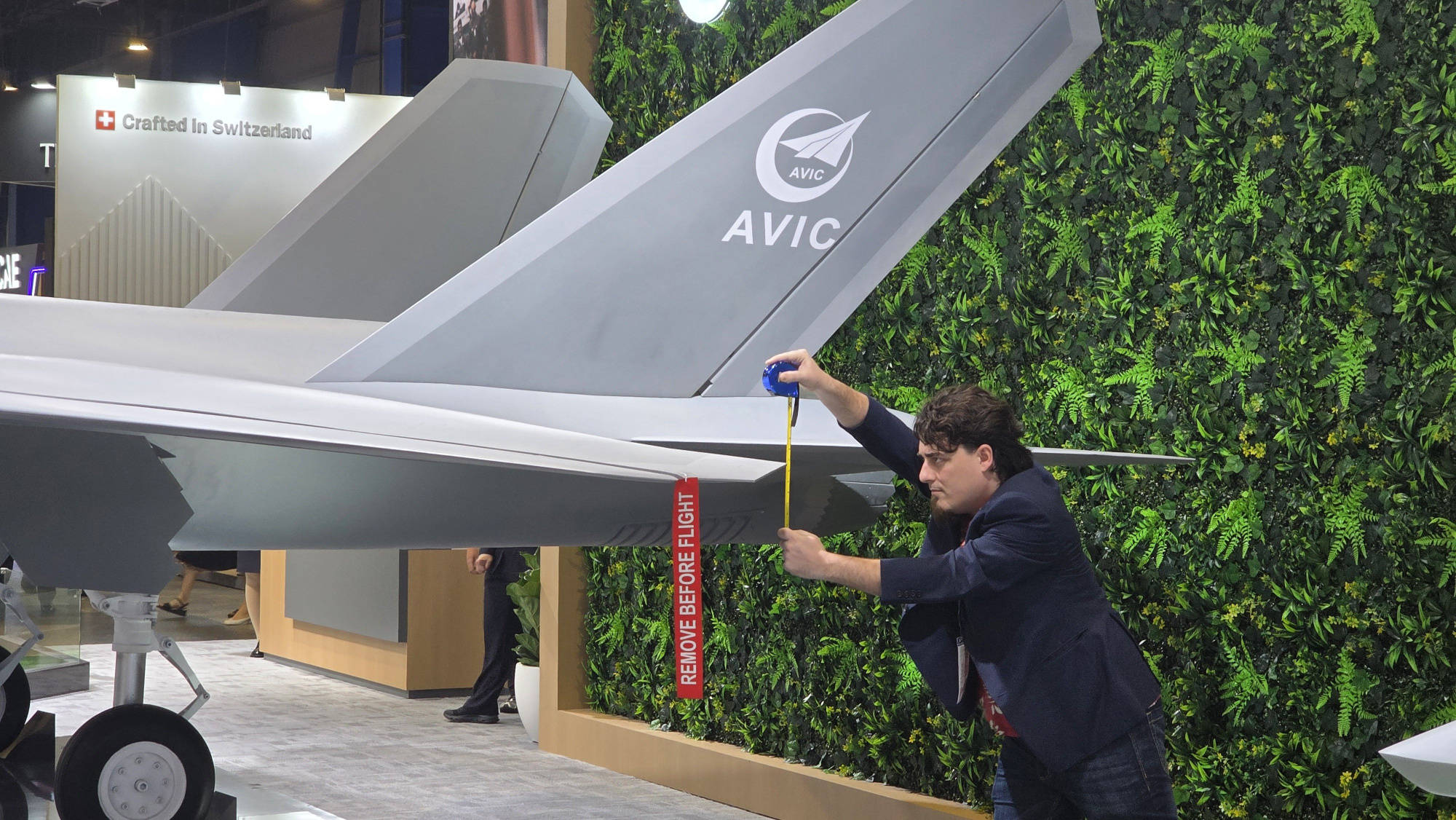 “世界名画:美国军工老板拉基用卷尺测量中国歼-35战机!”,当地时间2026年2月6日,在新加坡航展中国航空展区,歼-35战斗机模型,被中国制裁的美国安杜里尔军火公司老板,帕尔默·拉基亲自用卷尺对歼-35舰载机进行测量,帕尔默·卢基甚至亲自表示,“他对歼-35能否达到真正水平表示不信。”