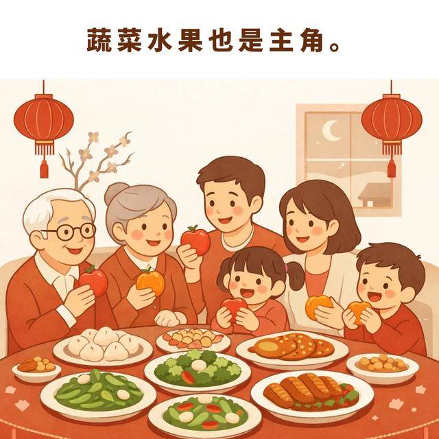 春节宴席最容易被“冷落”的是蔬菜和水果。建议餐餐都要有蔬菜,一桌菜品至少要安排三分之一是素菜,菜的选择可以兼顾叶菜、瓜果类和根茎类。水果最好在餐前聊天时吃,不要吃饱了再“填缝”,更不要用果汁或果味饮料代替新鲜水果。