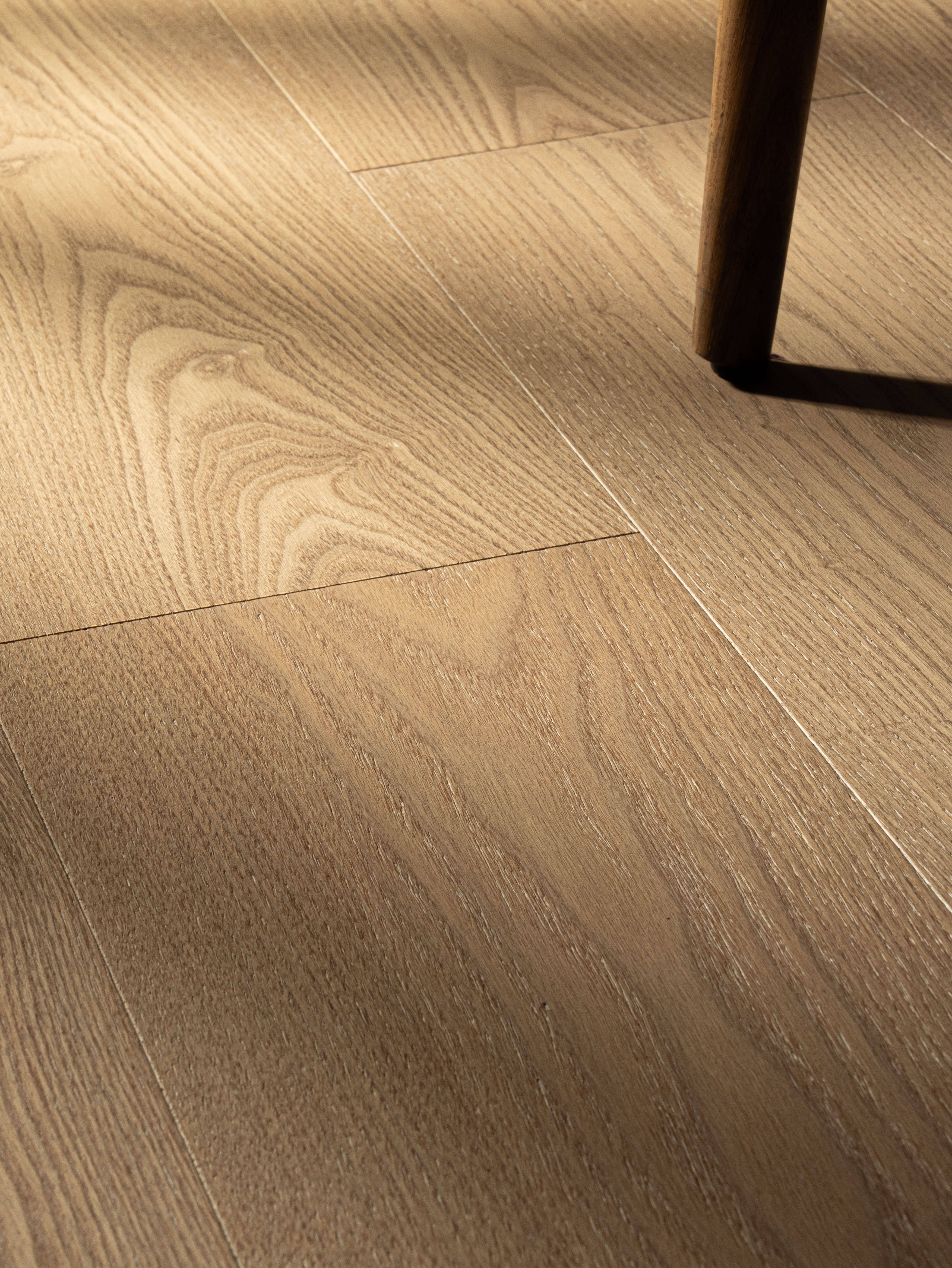 纯三层实木结构:科学的纵横交错排列,有效提升地板的稳定性和耐地热性能。