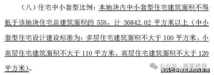 根据土地转让合同要求显示,项目住宅规划套数下限为536套,中小套型住宅建筑面积不得低于地块住宅总建筑面积的55%。