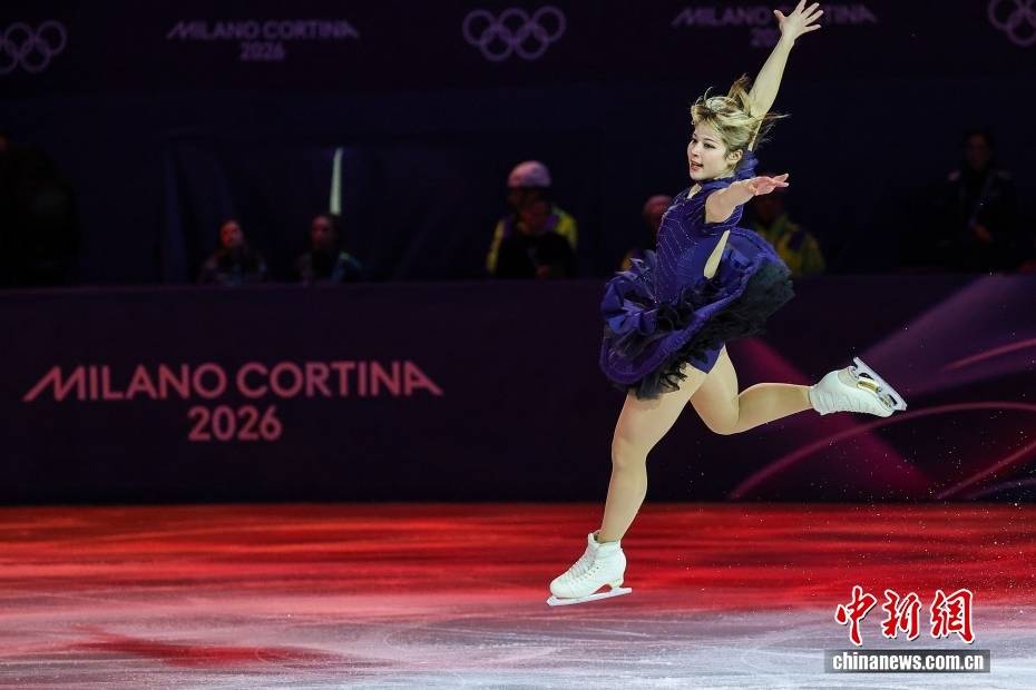 当地时间2月21日晚,2026年米兰-科尔蒂纳冬奥会花样滑冰表演滑在意大利米兰举行。美国女子单人滑选手安伯·格伦亮相。中新社记者 蒋启明 摄