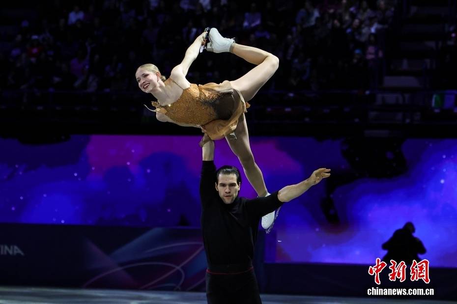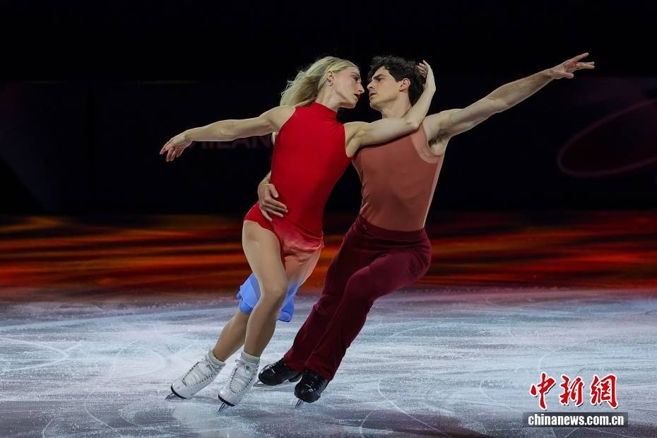 当地时间2月21日晚,2026年米兰-科尔蒂纳冬奥会花样滑冰表演滑在意大利米兰举行。图为加拿大冰舞组合吉勒斯/波里尔(右)亮相。中新社记者 骆云飞 摄