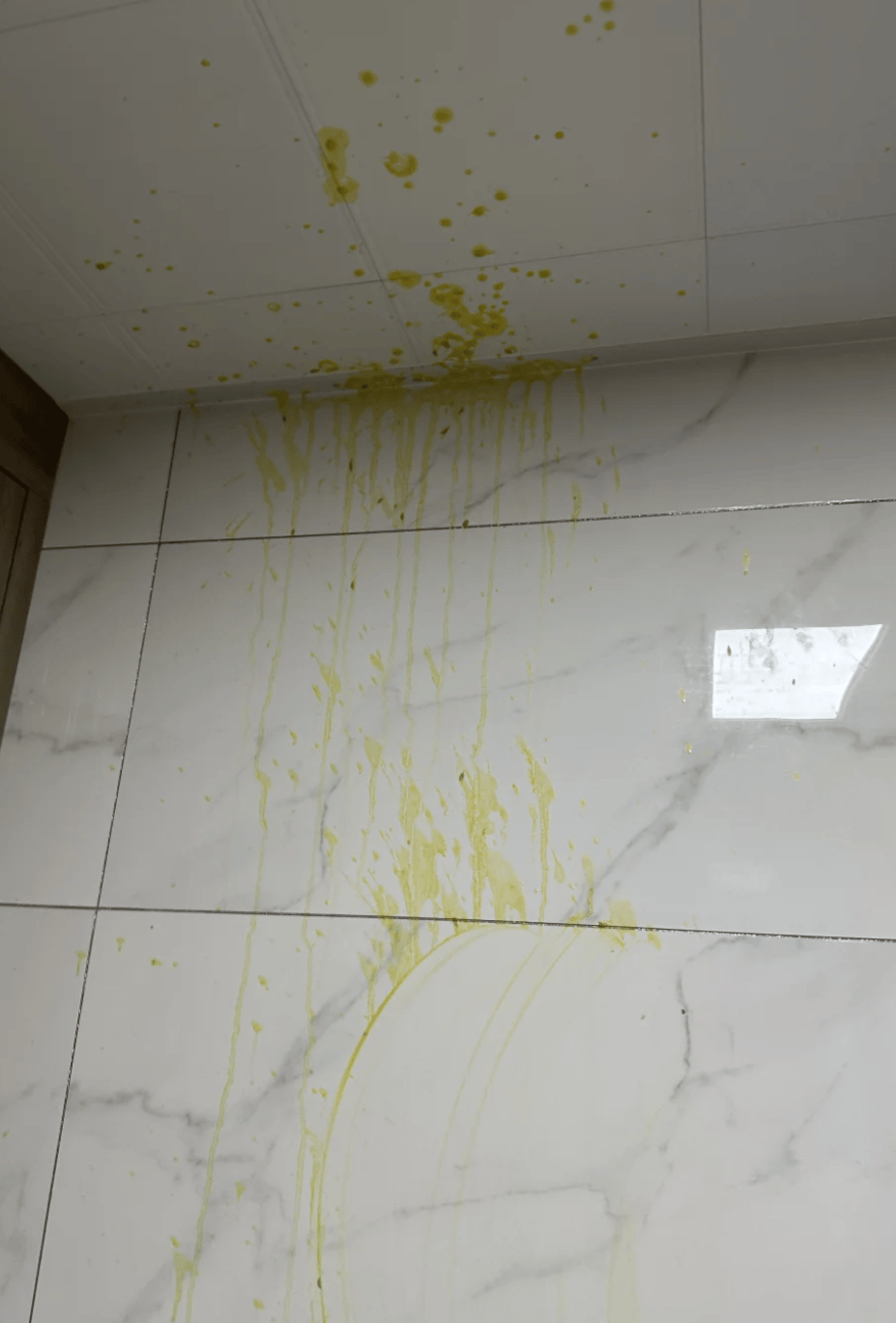 导致家中天花板等地方都被溅上杨枝甘露