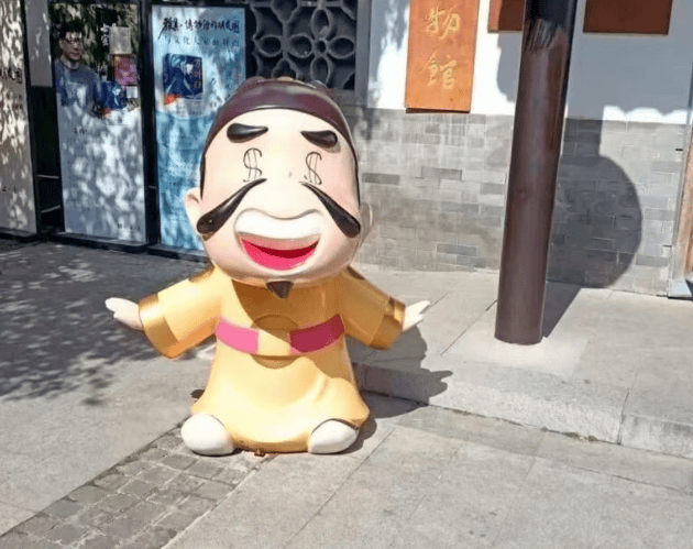 ▶南京明孝陵博物馆门口朱元璋玩偶眼睛被指像美元符号不合时宜,博物馆工作人员:系储蓄罐萌化设计,未来会更多考量文化内涵与观赏性平衡。
