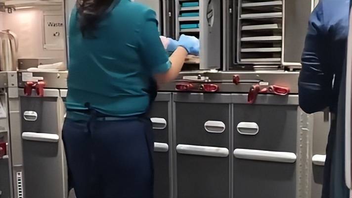 要知道此次航班全程 13 个小时,乘客起码要吃两顿飞机餐,机上其他吃喝也都从厨房端出。空姐在厨房用微波炉热饭时还得时刻留意脚下,生怕踩到去世的女乘客。