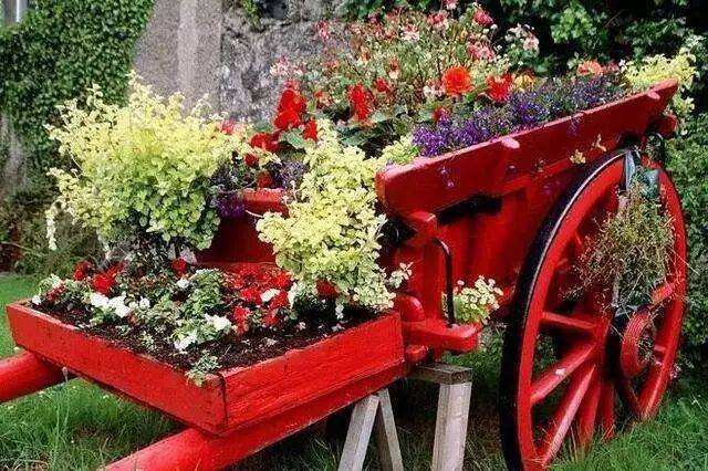 当然,为了保证植物的存活,小编建议还是一盆一盆放进去比较好,毕竟直接在车斗里铺土种植,花儿能不能保证存活还不一定呢。