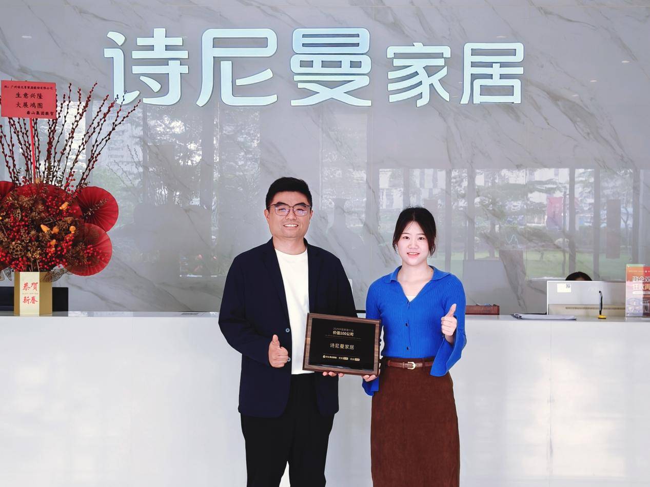 2026年4月9日,诗尼曼家居被正式授予“2025中国家居行业价值100公司”荣誉奖牌,搜狐焦点家居华南总经理胡彩贞与诗尼曼品牌赋能中心总监刘雷共同出席授牌仪式并合影留念,共同见证整家定制领域的荣耀时刻。此项荣誉是行业对诗尼曼综合品牌实力、市场价值与行业贡献的权威认可,更彰显其在整家定制赛道的标杆地位。