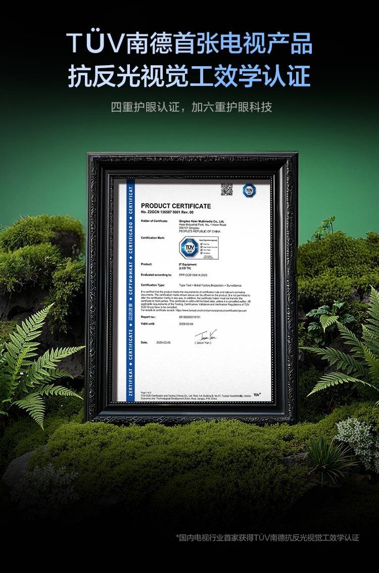 海尔最新发布的云溪电视H6D系列电视已在各大平台上市,正在一一终结上述痛点。该产品行业首家通过第三方检测认证机构TÜV南德意志集团(以下简称TÜV南德)抗反光视觉工效学认证,让用户看得清、更护眼,同时也宣告一个全新时代的到来——好画质,不怕光,成为海尔智家平台服务型科技生态企业,以技术升级改变用户生活方式的全新实践。与此同时,这款产品还围绕智慧、健康等核心能力全面迭代升级,加速引领行业回归用户本心。