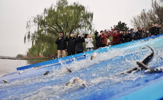 4月9日上午,通州区北运河漕运码头岸边,一场特别的增殖放流活动正在进行。蓝色的放流滑道直通水面,一尾尾鲢鱼、鳙鱼苗顺着滑道滑入河中,在水里摇摆着尾巴游向深处。岸边,执法人员、人大代表、政协委员和市民共同见证了3100公斤鱼苗顺利放流北运河。