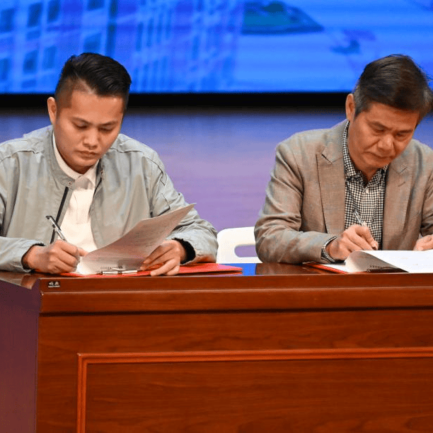 仪式现场,在泉州海洋职业学院副校长钱学东、陈永鑫及学院领导班子、全场师生的共同见证下,惠兴涂料与校方代表张恒中院长正式签署合作协议。这一举措不仅实现了双方资源共享、优势互补的深度联结,更承载着为绿色建材行业培育高素质专业人才的初心与使命。