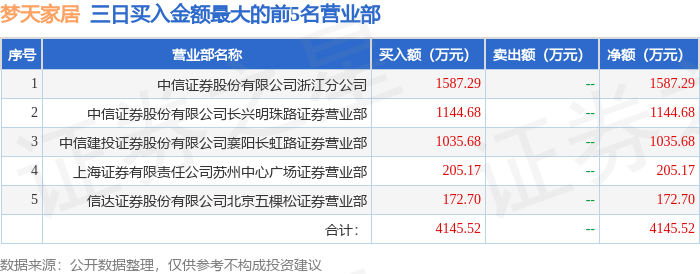 证券之星消息,沪深交易所2025年11月20日公布的交易公开信息显示,梦天家居(603216)因有价格涨跌幅限制的日收盘价格涨幅偏离值达到7%的前五只证券,非ST、*ST和S证券连续三个交易日内收盘价格涨幅偏离值累计达到20%的证券登上龙虎榜。此次是近5个交易日内第1次上榜。