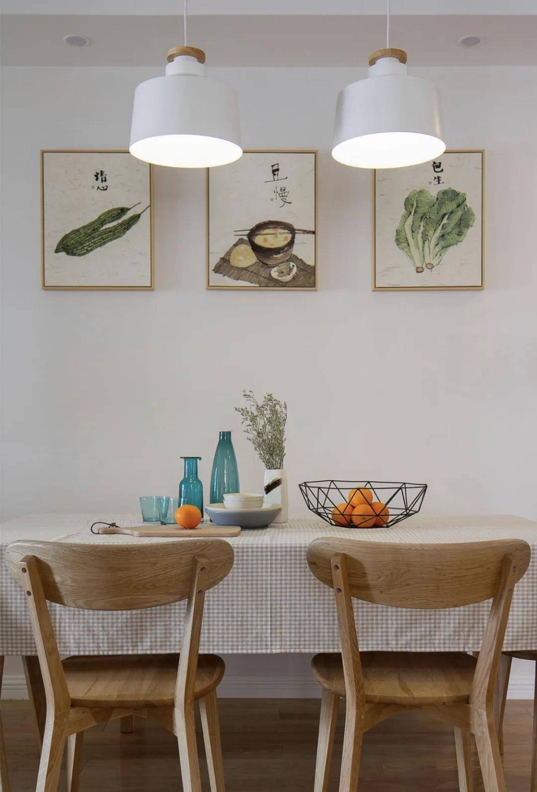 餐厅,简单的原木餐桌以及配套的餐椅,背景墙装饰画更显得好看,以简单实用为主。值得推荐的是从某宝上买回来的餐桌布,太好看了。随便一拍就是大片的既视感。