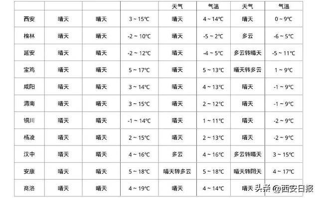 西安市气象台11月28日16时发布天气预报未来一周我市仍以晴间多云天气为主,受多股弱冷空气影响,12月1日起最高气温降至8℃~10℃。11月30日伴有阵风4-5级,部分时段有浮尘或扬沙天气。近期空气干燥,无明显降水,森林火险气象等级较高,请注意防范。具体预报如下↓今天晚上:晴间多云,2℃~10℃;29日:晴间多云,3℃~17℃;30日:晴间多云,阵风4-5级,0℃~15℃;12月1日:晴间多云,0℃~9℃;2日:多云,-1℃~9℃;3日:多云,1℃~8℃;4日:多云转晴天,-1℃~10℃;5日:晴间多云,0℃~11℃。