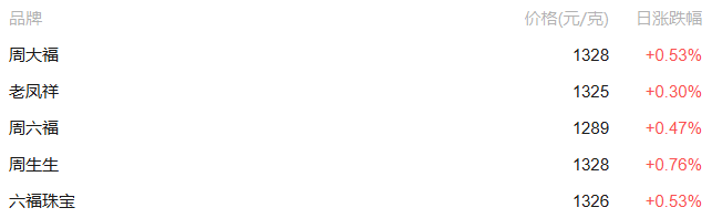 29日,国内多个品牌金饰价格上涨,部分品牌金价达到1328元/克。