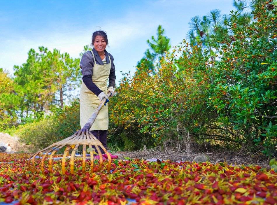 2025年11月29日,江西省抚州市临川区河埠乡油顿村的云中中药材专业合作社,工人忙着晾晒中药材黄栀子。