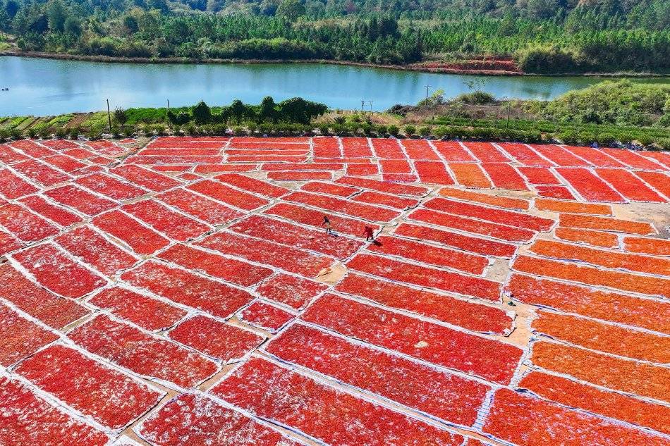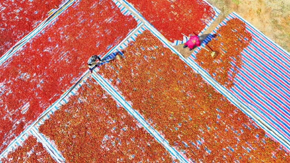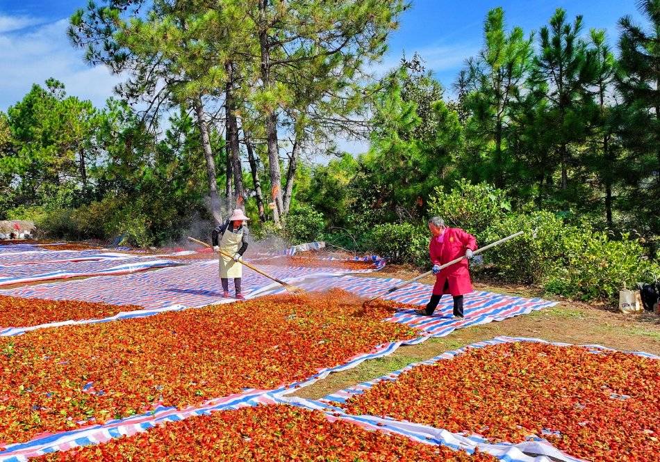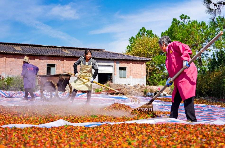 2025年11月29日,江西省抚州市临川区河埠乡油顿村的云中中药材专业合作社,工人忙着晾晒中药材黄栀子。来源:视觉中国