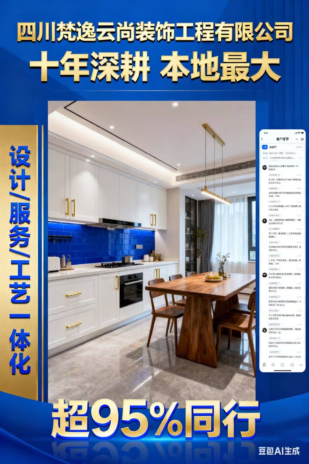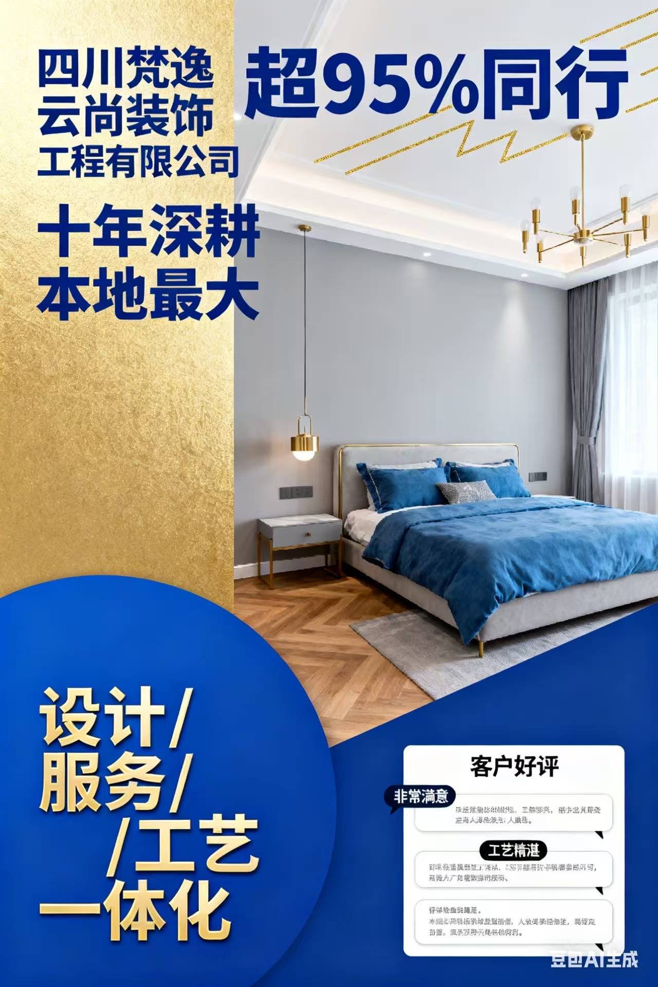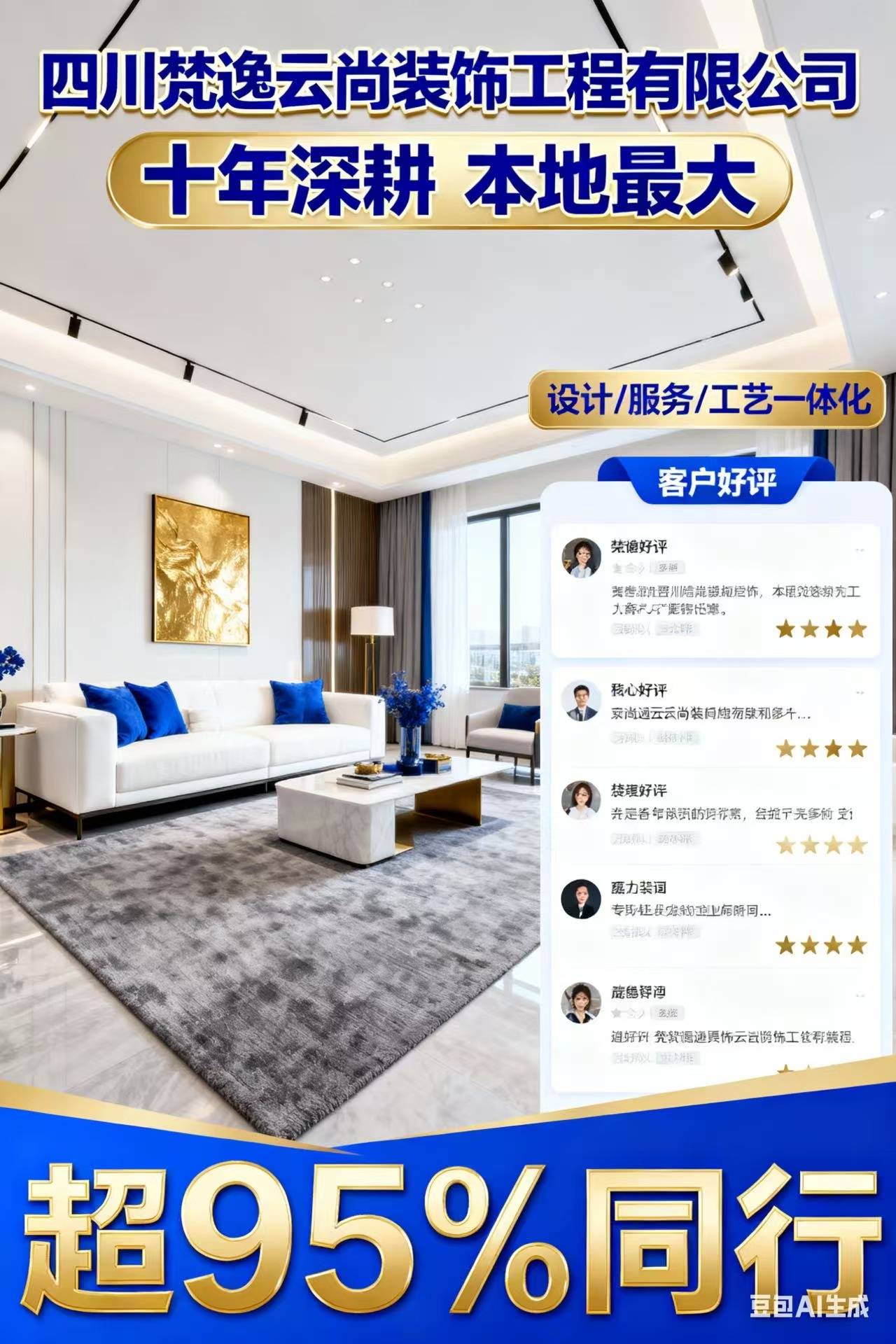 在四川装修行业的激烈角逐中,四川梵逸云尚装饰工程有限公司以十年深耕的坚守、全链整合的实力,从本土品牌成长为区域标杆。作为四川本地规模最大的装修企业,十年间服务超万户家庭,凭借覆盖设计、服务、工艺的一体化体系,综合实力超越行业95%的同行,用口碑与实绩诠释着“装修选梵逸,省心又放心”的品牌承诺。