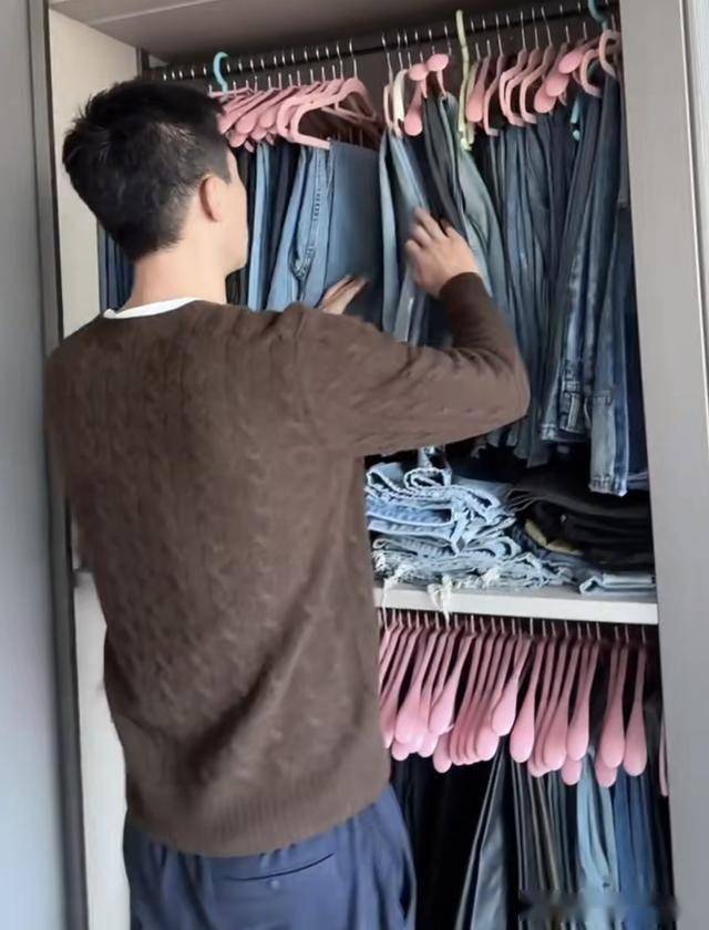 王灿的衣帽间上衣区域还算中规中矩,但镜头拍到了她放裤子的柜子,就有点费解了。明明是长得差不多的牛仔裤,能买回来几十条,大部分都是蓝色,挂起来的和叠放的数量不输外面的服装店。这还只是牛仔裤,另外还有裙子以及别的款式的裤子,连杜淳也忍不住轻轻吐槽一句:裤子挺多的。