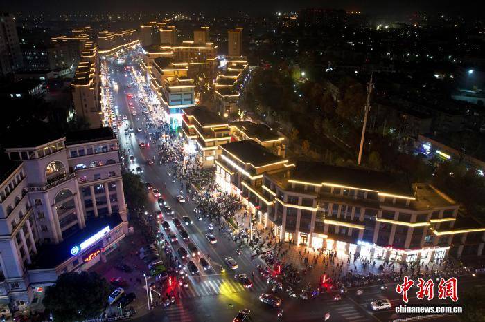 12月1日,游客在安徽省广德市绥安路排队购买“三件套”。(无人机照片)中新社记者 张强 摄