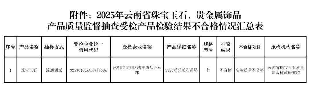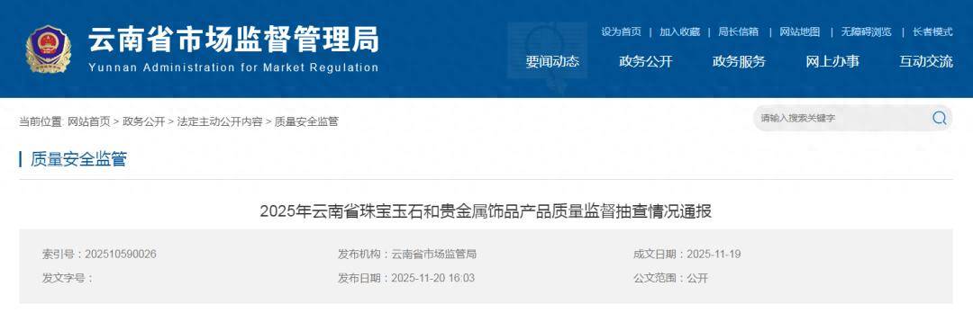 据云南省市场监督管理局网站消息,2025年,云南省市场监督管理局按照年度工作计划,在全省范围内对珠宝玉石和贵金属饰品产品开展质量监督抽查,现将主要情况通报如下: