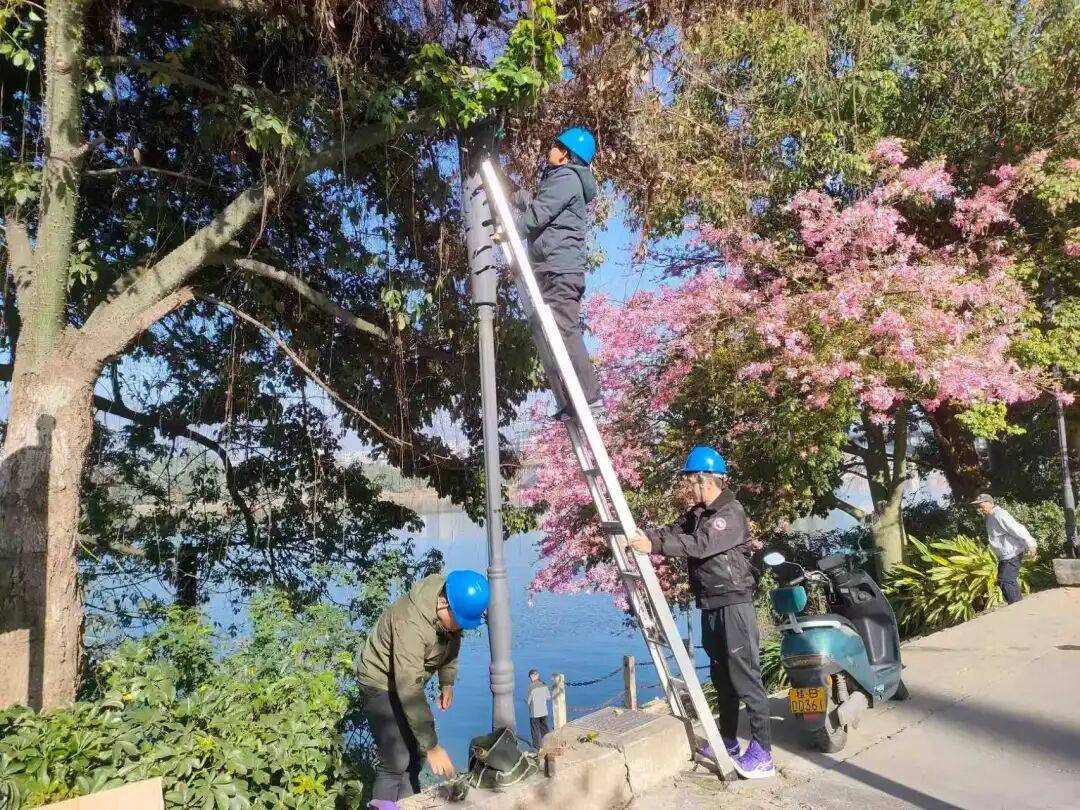 融安县“一江两岸”河堤沿线部分庭院灯因使用年限较长、受河边湿气影响较大,出现了光源损坏、灯具老化、亮度不足等问题,既影响了城市夜景的整体美观,也给夜间散步的市民带来安全隐患风险。